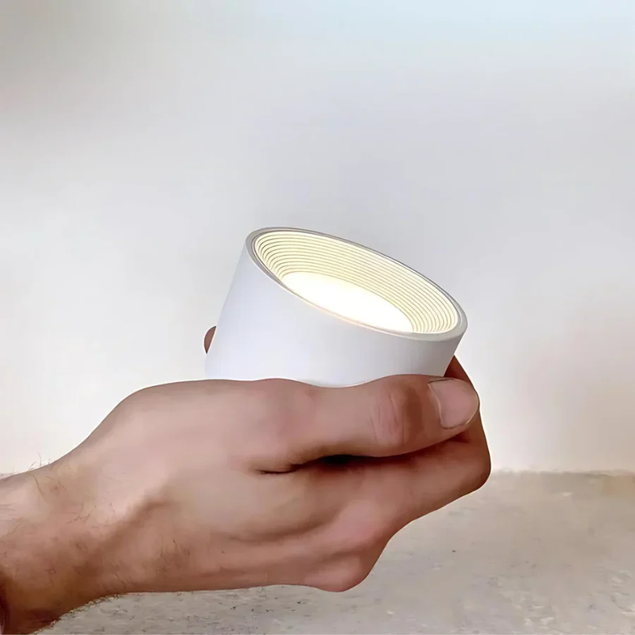The Infinity Wall Lamp is easy to install and use. No tools or wires are needed – simply attach the lamp by removing one of the included adhesive strips, place it where you want, and hold it in place for a few seconds. Then you’re done. The lamp’s head can rotate 360 degrees to adjust the light as needed. When it’s time to charge the lamp, just remove it from the holder and connect it to the included USB-C charger. This lamp is perfect for places without wall outlets, where you don’t want to drill or have hanging cables.